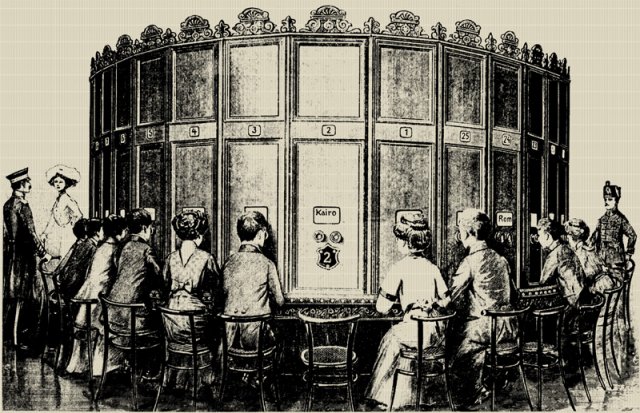 Aquest aparell de visitar paisatges és un Panorama Imperial (un Kaiser-Panorama), i Walter Benjamin hi guaitava, quan era un infant, per fer amistat amb el globus terraqui. Ho conta al preciós Infància a Berlín cap al 1900, publicat no fa gaire en català. És una bella minyonia d'un infant orat, si Mossèn Riber m'ho permet. I tot s'ha de dir: és una sort que la puguem llegir amb el Google Imatges a mà.