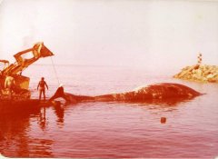 Tenc davant, a l’escriptori de l’ordinador, una crònica que va aparèixer al diari ABC diumenge dia 18, signada per Jesús Jurado. L’animal, diu, va arribar viu, però va morir poc després de tocar terra. Alguns deien que havia arribat acompanyat de dos congèneres, però el cronista aclareix que la mida desacostumada d’aquesta criatura, que de vegades mostra el cap, de vegades l’esquena i de vegades la cua, degué despistar els testimonis. La visita d’una balena va donar lloc a algunes històries que encara esperen la ploma d’algun dels nostres novel·listes: les dues primeres són sobre els intents de treure l’animal a terra amb dos tractors i la de la disputa per l’esquelet, que els veïns de la Colònia reclamaven per poder utilitzar com a atracció turística. Es tractava, al cap i a la fi, d’un rorqual comú, el segon animal més gros de la Terra, després de la mítica (per a mi era un mite) balena blava. És, amb tota probabilitat, la bèstia que va engolir el profeta Jonàs i, potser, la que es va empassar Gepetto, Pinotxo i el grill: ni els hebreus de fa 3.000 anys ni Carlo Collodi devien tenir notícies de la balena blava.