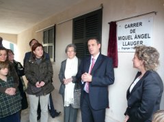 Avui matí s'ha descobert la placa que converteix l'antic carrer 7, d'Es Jonquet, en el "Carrer Miquel Àngel Llauger, enginyer". Ha estat un acte senzill i emotiu, amb presència de familiars i de bons amics. El carrer és una monada. La batlessa i el degà del Col·legi d'Enginyers han parlat molt bé, però l'estrella ha estat, sense dubte, mumare.